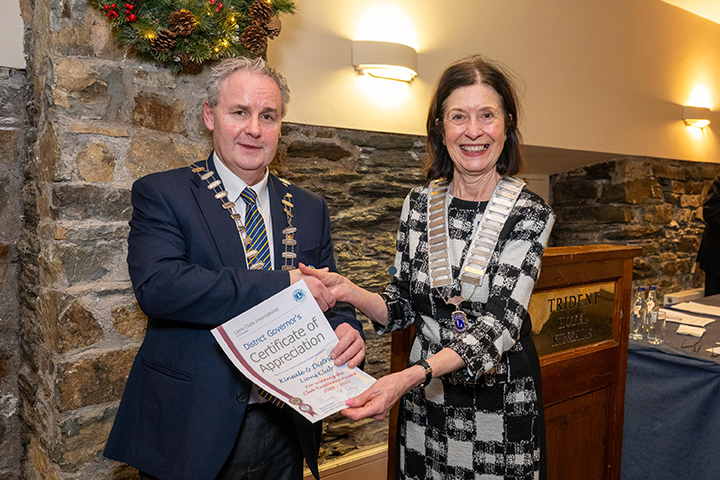 District Governor Marian McGreevey, whose theme is ‘We Serve Together’, praised the club for its leadership and community engagement, noting that Kinsale & District Lions Club exemplifies the collaborative spirit and service ethos of Lionism. Kinsale & District Lions Club has delivered a wide range of initiatives throughout the year, including major community fundraising events, health and wellbeing supports, senior citizen initiatives, food and toy appeals,